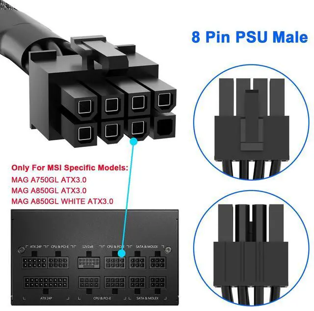 [PSU Compatibility]This 8 Pin PCIe Cable ONLY Compatible with M SI MAG A750GL and MAG A850GL (Black & White) ATX3.0