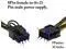 The input jack is an 8 Pin GPU female for connecting the power supply with 8-Pin plug, the output socket is two 8 Pin PCI-E male plugs to go into a video card with 6-Pin or 8-Pin jacks.