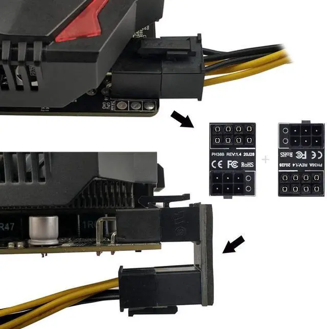 You can install the 6pin/8pin power cable from vertical to horizontal direction with this adapter
