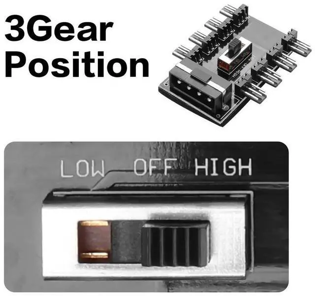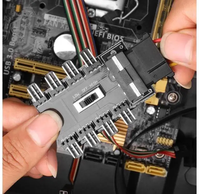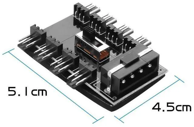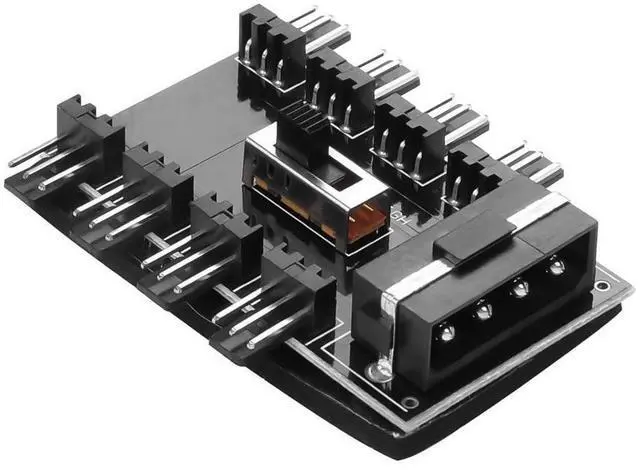IDE 4Pin This cooling fan splitter has a IDE 4Pin connector, it can be used for 12V, 3-pin cooling fans and up to 8 fans (8 channels)this one to eight interface can help you solve the problem of insufficient motherboard fan ports at once.