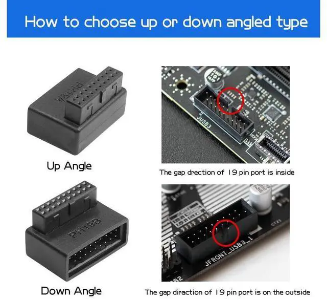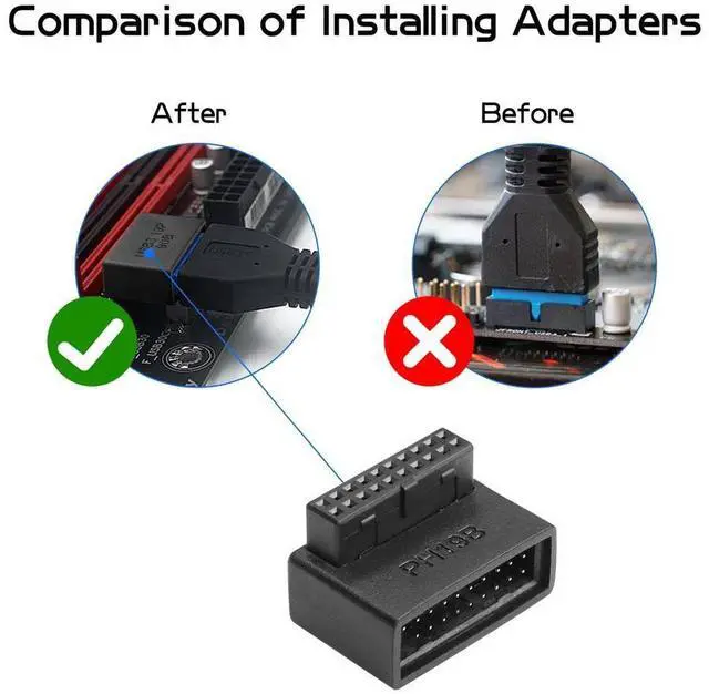 Use this YACSEJAO 90 degree L to bottom adapter to provide a convenient solution for changing the orientation of your USB 3.0 20 pin/19 pin cable. No more wrapping or folding cables around the motherboard to keep the housing guide clean.