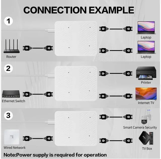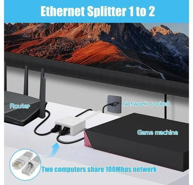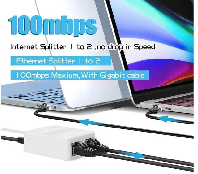 [2-Port Ethernet Switch] Each output port of the Ethernet Cable Splitter supports up to 100Mbps, so you can enjoy high-speed Internet access on two devices (e.g. laptop and WiFi) at the same time.
