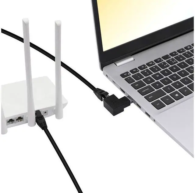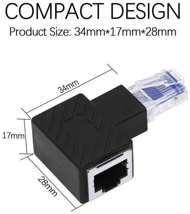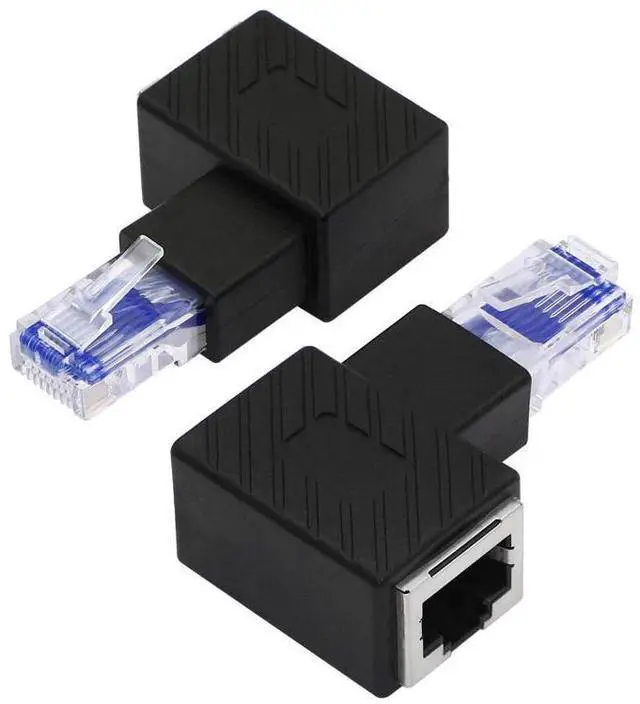 90° RJ45 male to female adapter]90° elbow design, smooth insertion and removal: small space, TV, computer chassis, wall corner, wall edge wiring, smooth plug and play, easy to use.