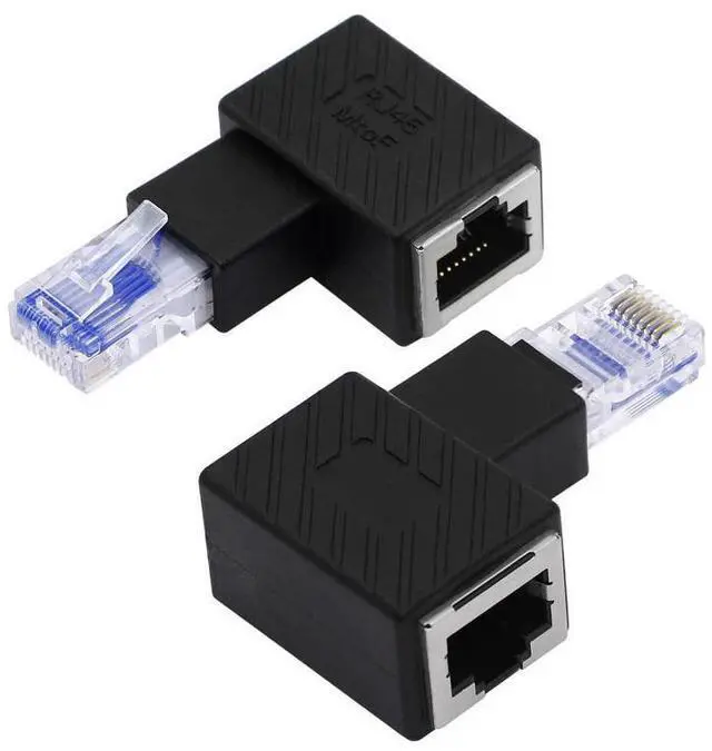 Vszerda Cat5e/Cat6 RJ45 Ethernet Adapter2Pack 90 Degree Ethernet RJ45 / 8P8C Male to Female Right Angle Adapter Support Cat6 / Cat5e / Cat5 Standard LAN CableLeft