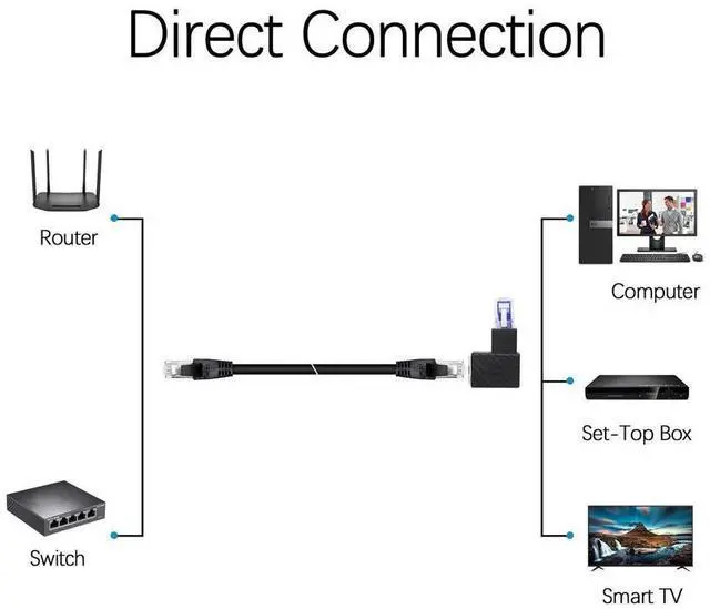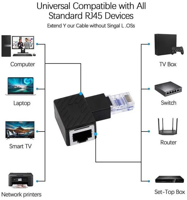 [YACSEJAO 90° RJ45 male to female adapter]90° elbow design, smooth insertion and removal: small space, TV, computer chassis, wall corner, wall edge wiring, smooth plug and play, easy to use.