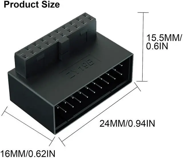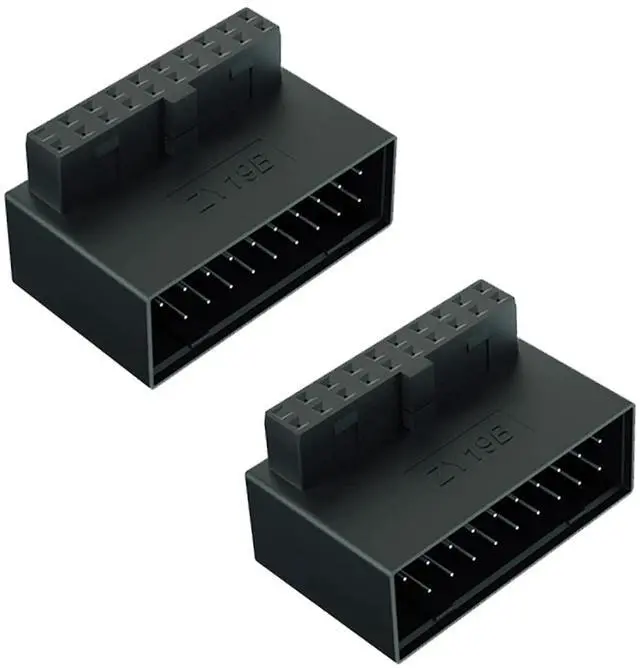 With L-shaped 19-pin female motherboard design, it allows the USB 3.0 19-pin cable to have a proper extension direction and can be mounted at a 90-degree angle, you no longer need to wrap or fold the cable back and forth on the motherboard, reducing the number of cables needed in front of the motherboard tray.