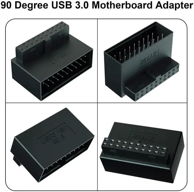 • [90 Degree USB 3.0 Motherboard Adapter] With L-shaped 19-pin female motherboard design, it allows the USB 3.0 19-pin cable to have a proper extension direction and can be mounted at a 90-degree angle, you no longer need to wrap or fold the cable back and forth on the motherboard, reducing the number of cables needed in front of the motherboard tray.