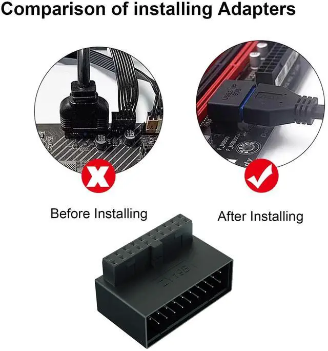 • [Down Angled 19 Pin Female Plug]There are two style of angle for this USB 3.0 Motherboard Adapter. Up Angle and Down Angle Tilt, and this model is 90-degree upward USB3.0(19 pin) and is to revolving mother extension adapter, please check your computer motherboard carefully before purchase it.