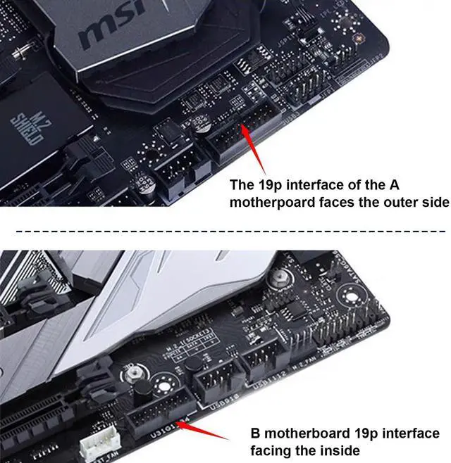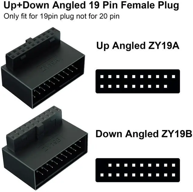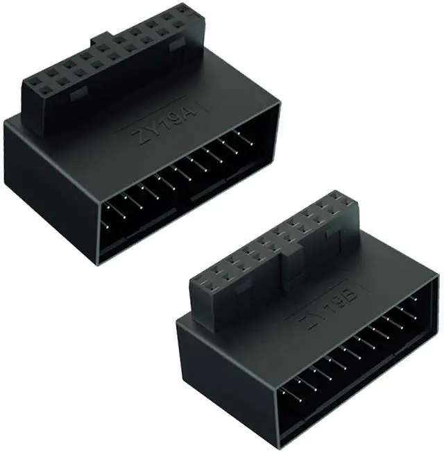 With L-shaped 19-pin female motherboard design, it allows the USB 3.0 19-pin cable to have a proper extension direction and can be mounted at a 90-degree angle, you no longer need to wrap or fold the cable back and forth on the motherboard, reducing the number of cables needed in front of the motherboard tray.