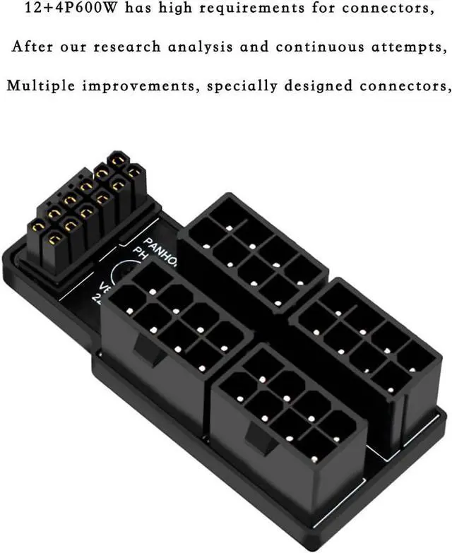 Vszerda PH316-48 4 * 8P to ATX3.0 12VH-PWR 12+4P 180 Degree Power Steering Connector 600 W for 40 Series Graphics Card, Black (B Type)