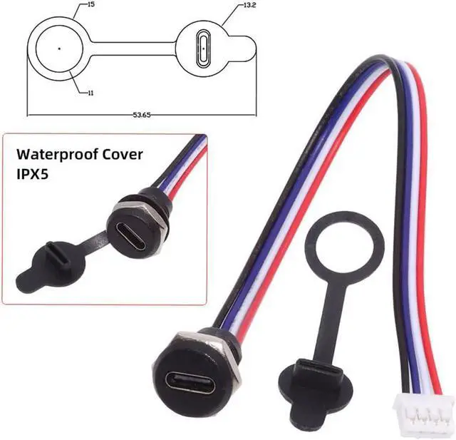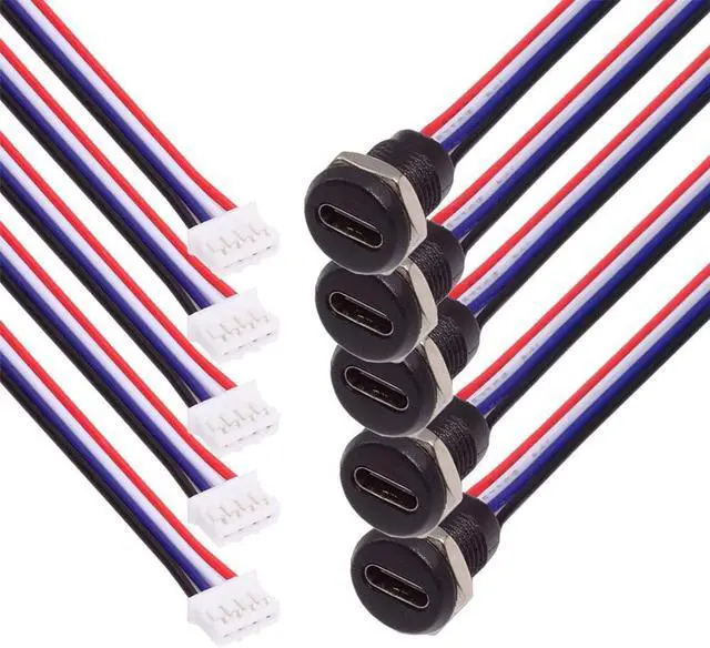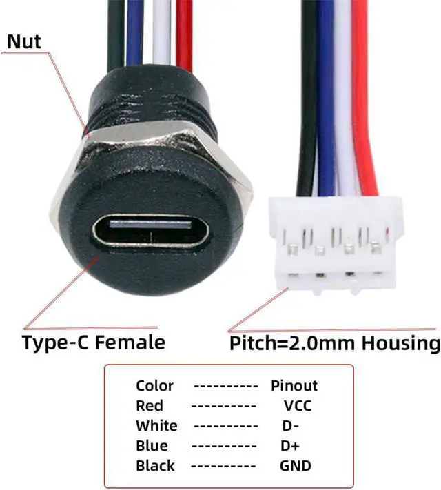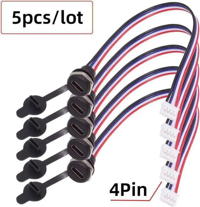 5pcs/set DIY OEM Type C Female Socket to 4Pin Header Cable Pitch=2.0mm Panel Mount Type DC 5V Power Data