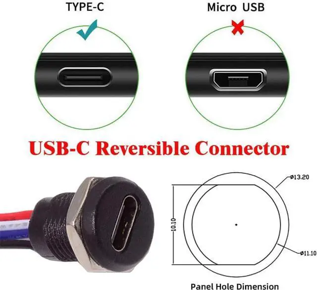 Panel-Mounting: A great solution to continuing your USB-C connection to your cabinet device. Connect your cable to the Type-c female panel mount to continue your USB power.