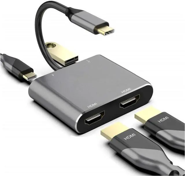 Type C To Dual HDMI-Compatible USB 3.0 PD Converter 4 In 1 USB C Dock Station Hub 4K Adapter Cable for Phone Macbook Laptop TV