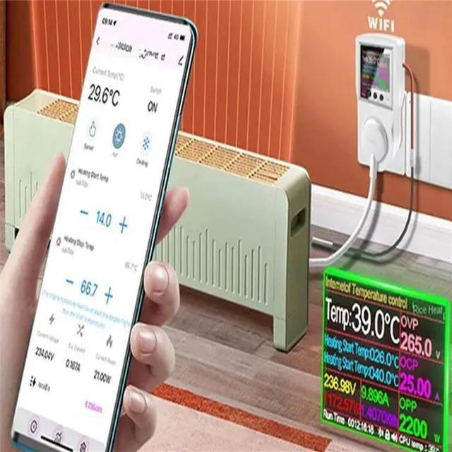FOR Smart Home Wifi Socket AC Voltmeter Thermostat With Timing Switch Sensor Probe Cooling Heating EU Plug