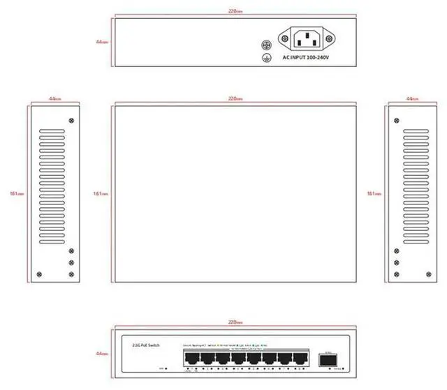 FOR 2.5GbE POE Switch 9 Port 2.5G Network Switch 8x2.5GPOE Ports+1x10Gb SFP Optical Port Internet Splitter Fanless UK Plug