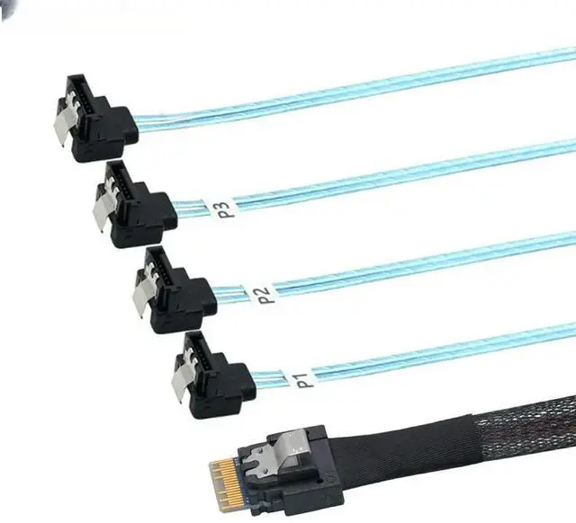 FOR Efficient and Reliable PCIE Slimline SAS 4.0 38pin SFF-8654 4i to 4 SATA Female 90 Degree Cable