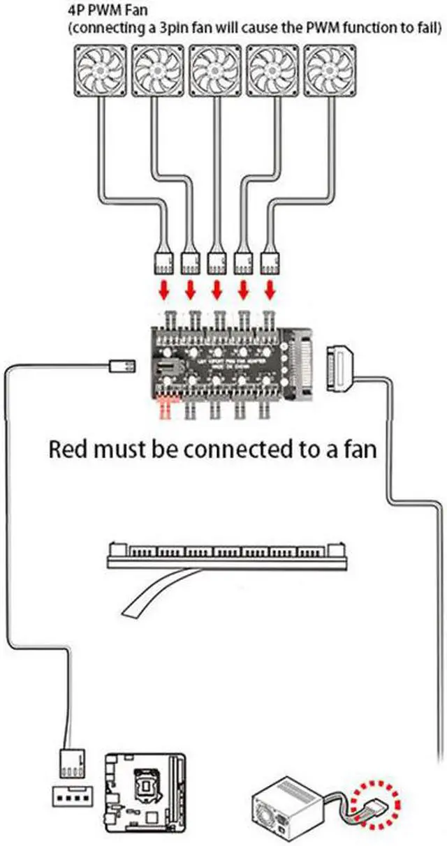PWMHUB10D50 10 Ports PWM 4pin CPU Cooler / Case / Chassis Cooling Fan Hub,10 Port 12V 4 Pin Fan PWM Fan Hub Controller