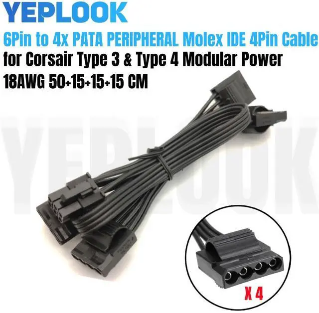 • YEPLOOK 6Pin to 4 Molex IDE 4Pin PATA Perif Fan Cable for CORSAIR RM1000x, RM850x, RM750x, RM650x, RM550x Modular Power PSU