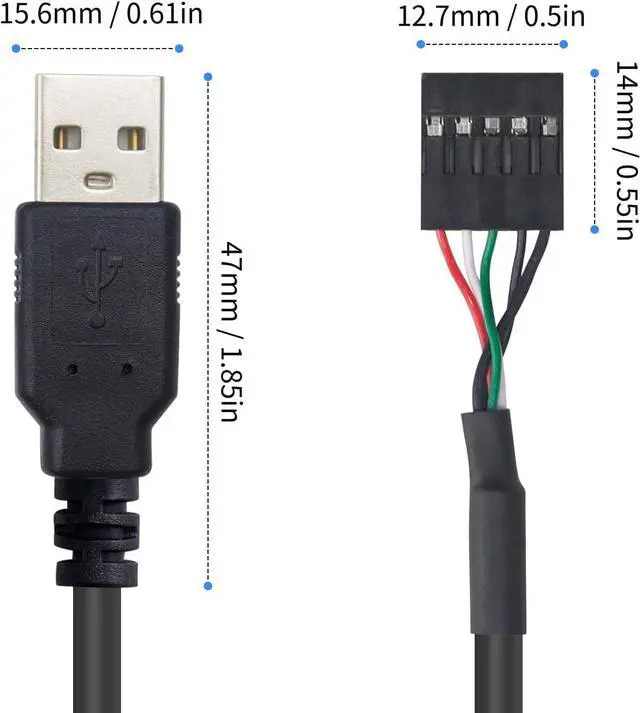 5 Pin Motherboard Female Header to USB 2.0 Male Adapter Cable