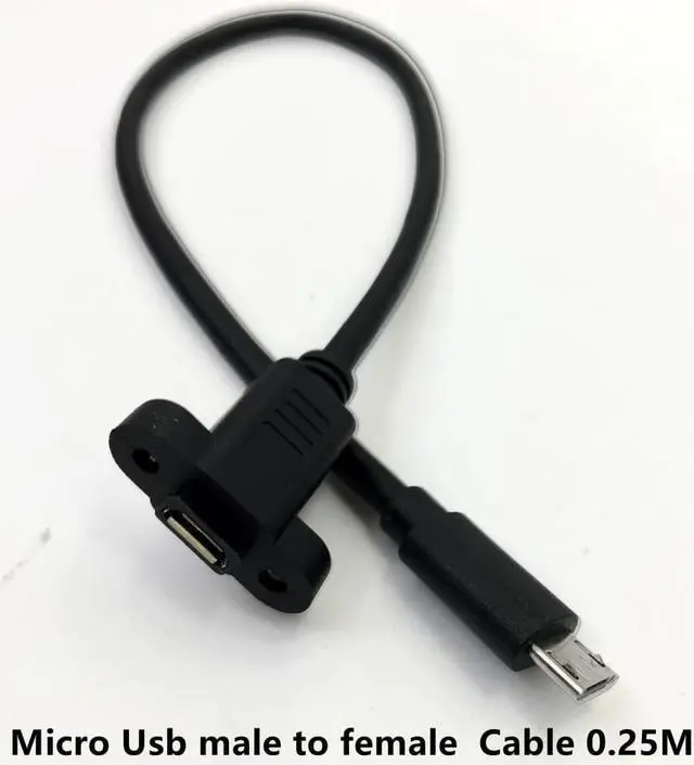 0.25m Micro USB USB 2.0 Male Connector to Micro USB 2.0 Female Extension Cable Pitch 17.5mm With screws Panel Mount Hole