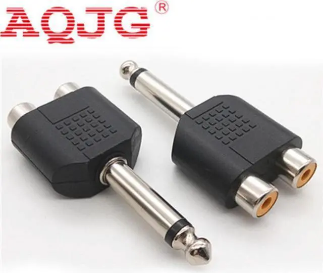 5pcs 6.35mm Plug Two Channel Male Turn 2RCA Audio Connector Female ,6.5 To AV Adapter One Divided Into Two Microphone Plug