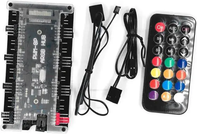 3-Pin ARGB Hub for Desktop PC Case RGB LED Hub Extension Cable Remote Control 8 Port Power PWM Fan Hub Splitter