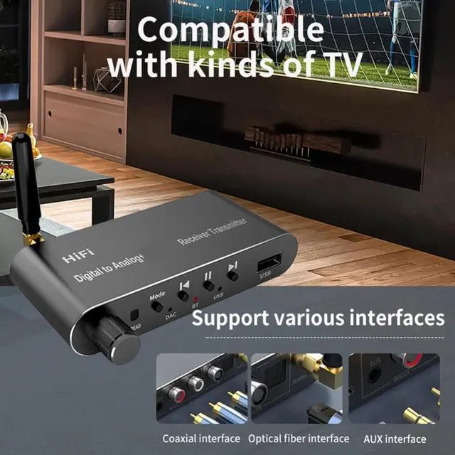 Receiver Transmitter Digital To Analog Wireless Adapter U Disk Play IR Remote Control Bluetooth-compatible for TV PC PS Switch