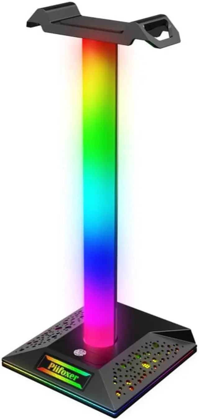 RGB Strip Light Desk Holder Dual USB Ports Plastic Desktop Display Holder with 3.5 mm Audio Touch Control Earphone Accessories