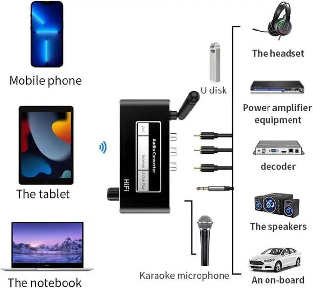 Audio Converter Adapter with Remote Control Wireless Audio Adapter U Disk Play Mic Bluetooth-compatible for Projector Amplifier