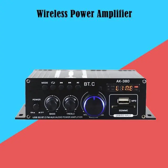 AK380 Bluetooth-Compatible Amplifier 2 Channel Power Amplifier 12V HIFI Bass 40W+40W Music Player USB AUX Karaoke for Home Car