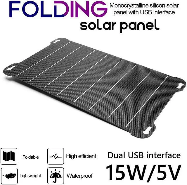 15W 5V Solar Panel Charger IPX6 Waterproof ETFE Charger Solar Panel Monolithic Silicon Scratchproof for Phone Power Bank