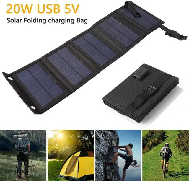 20W Portable Solar Panel 5V Folding Solar Cell Foldable Waterproof USB Port Charger Mobile Power Bank for Phone Outdoor
