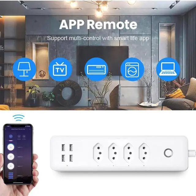 WiFi Smart Power Strip Brazil Plug Smart WiFi Power Strip Socket 4 Outlets 4 USB Ports Works with Alexa App Control