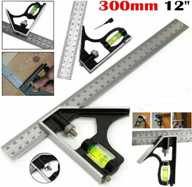 300Mm Square Angle Ruler Adjustable Combination 45 / 90 Degree With Bubble Level Multifunctional Gauge Measuring Tools