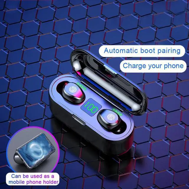F9 Wireless Touch Bluetooth Earphone Binaural With Mobile Phone Charging Compartment Earbuds Sports Headset With Digital Display