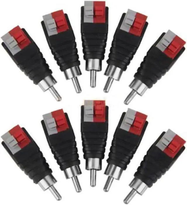 10PCS Speaker Wire Cable to Audio Male RCA Connector Adapter Jack Plug Pip BE