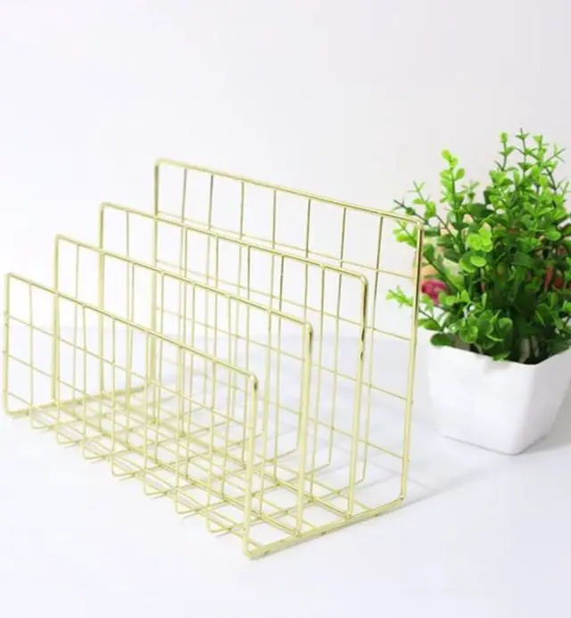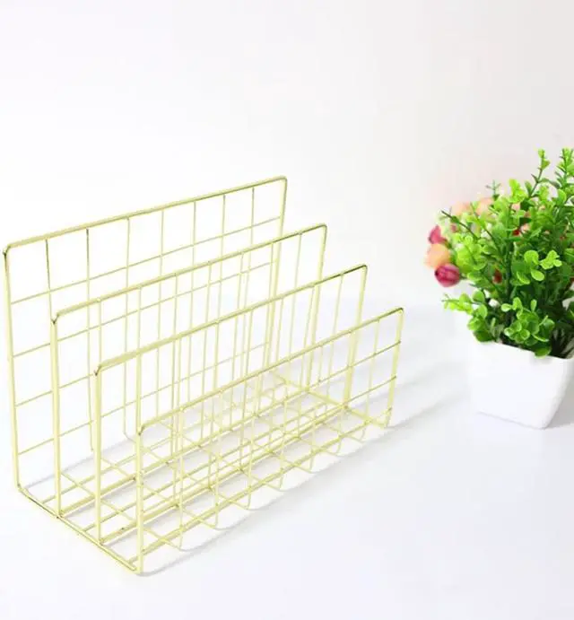 Wrought Iron Metal Three Grid Bookshelf Creative Book Stand Desktop Decoration File And Book Organizer