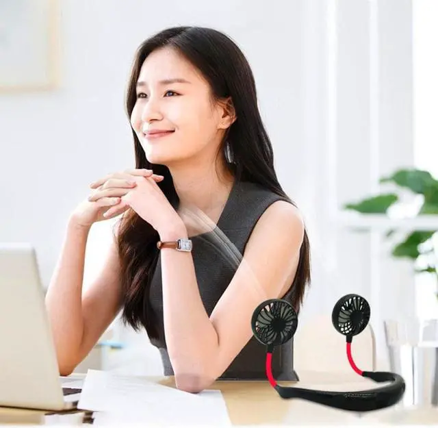 Mini Neck Fan Portable Hanging Neckband Fan USB Rechargeable Double Fans Air Cooler Conditioner Lazy Person Electric Desk Fan