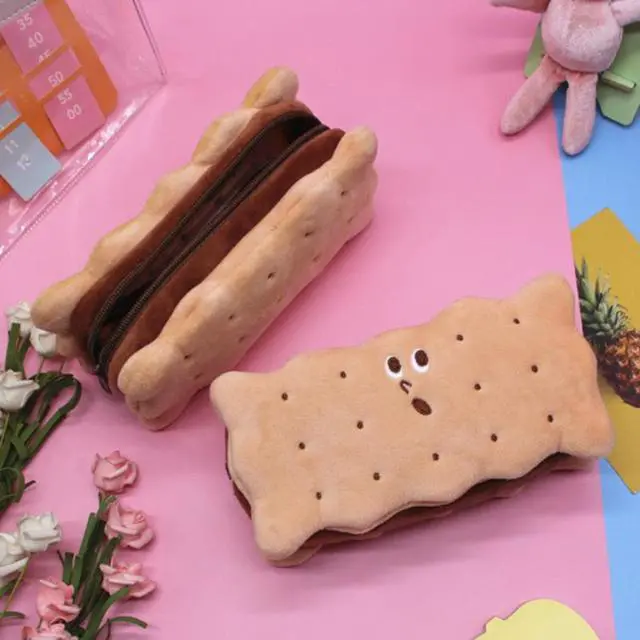 Ins Hot Sale Sandwich Cookie Pencil Case Plush Pencil Bag Cookies Large Capacity Student Cute Stationery Case