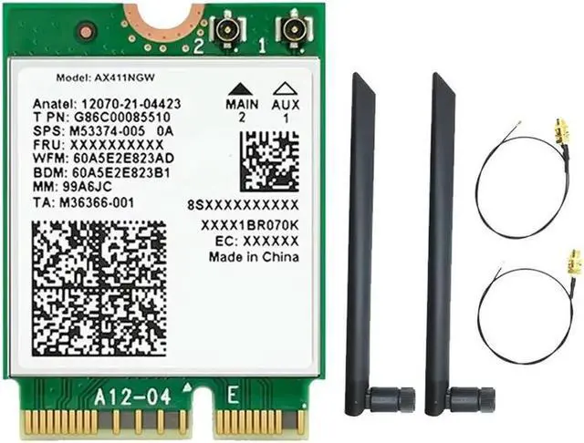 For AX411 Card+8DB Antenna 6E CNVio2 BT 5.3 Tri-Band 5374Mbps Adapter for Laptop/PC Win10/11-64Bit