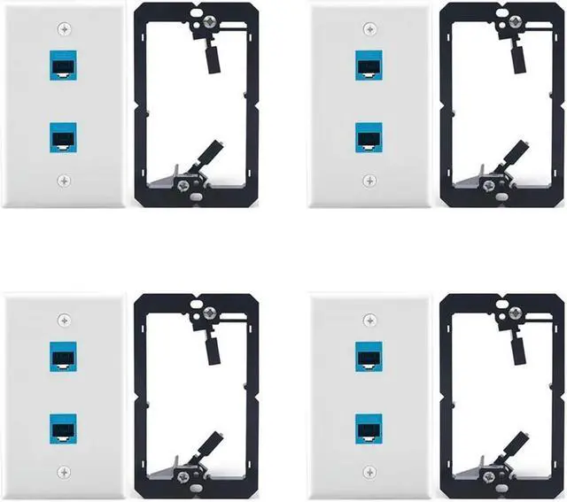 4X Ethernet Wall Plate With Low Voltage Mounting Bracket,Single Gang 2 Port Cat6 Keystone Ethernet Cable Wall Outlet