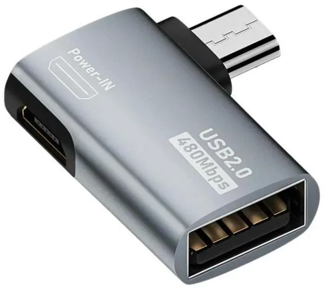 4K OTG Cable Adapter Power Supplied Micro-USB to USB with Angle Design. Suitable for Tablet, TV (Right) -AB01