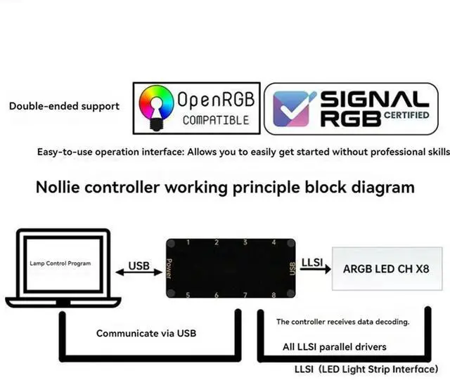 SignalRGB OpenRGB Universal 8Port 5V 3PIN ARGB Asynchronous Controller HUB for Computer PC Case Cooling Fans Light Strip-AB01