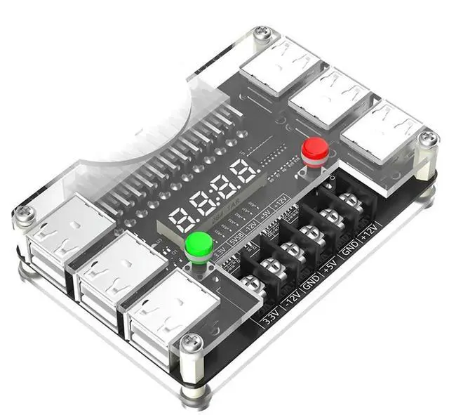 ATX Power Supply Breakout Board with Acrylic Case 3.3V, 5V, 12V, -12V Output Voltage and 12 Ports USB, 3A Maximum Output-AB01