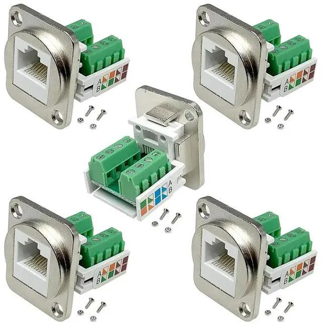 RJ45 Panel Mount Screw Terminal Adapter, RJ45/8P8C Panel Mount Connector, D-Type RJ45 Female Solderless Terminal-AB01