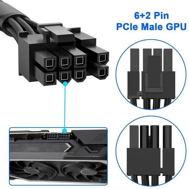 [Hassle-Free Installation]Step 1 - Plug the 8-pin male end into your modular PSU. Step 2 - Connect the 6+2-pin end to your GPU (Not to motherboard!). PCIe Cable Length: 2.13 ft / 65 cm