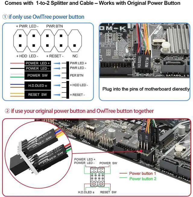 Comes with 1 to 2 splitter boards & splitter cables: The small 1-to-2 splitter allows the power button to work alongside your original one. If space is limited, use the included 1-to-2 splitter cable instead.