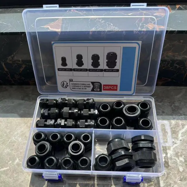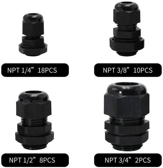 NPT waterproof connector 1/4, 3/8, 1/2, 3/4 inches, 38 pieces, combination, black with gasket, cross-border combination