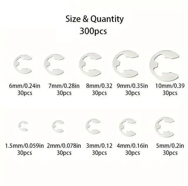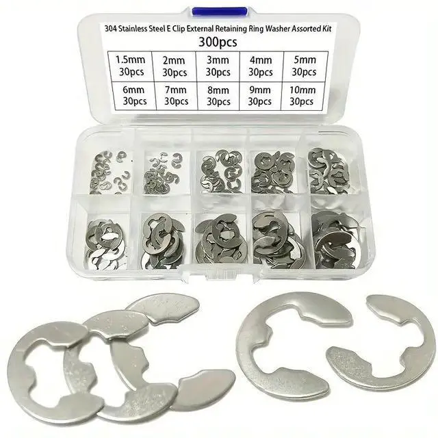 300 pieces of 304 stainless steel E-shaped open spring, open spring, C-shaped flanged shaft, E-shaped flanged cross-border combination assembly