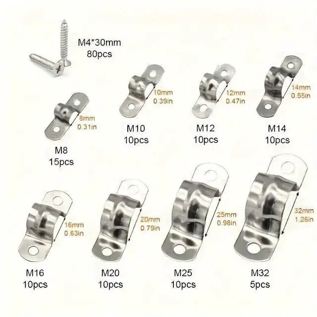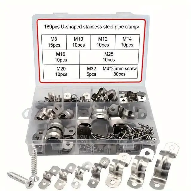 160-piece stainless steel U-shaped pipe clamp set, U-shaped bolt saddle-shaped fastener set with metal cable clamp kit